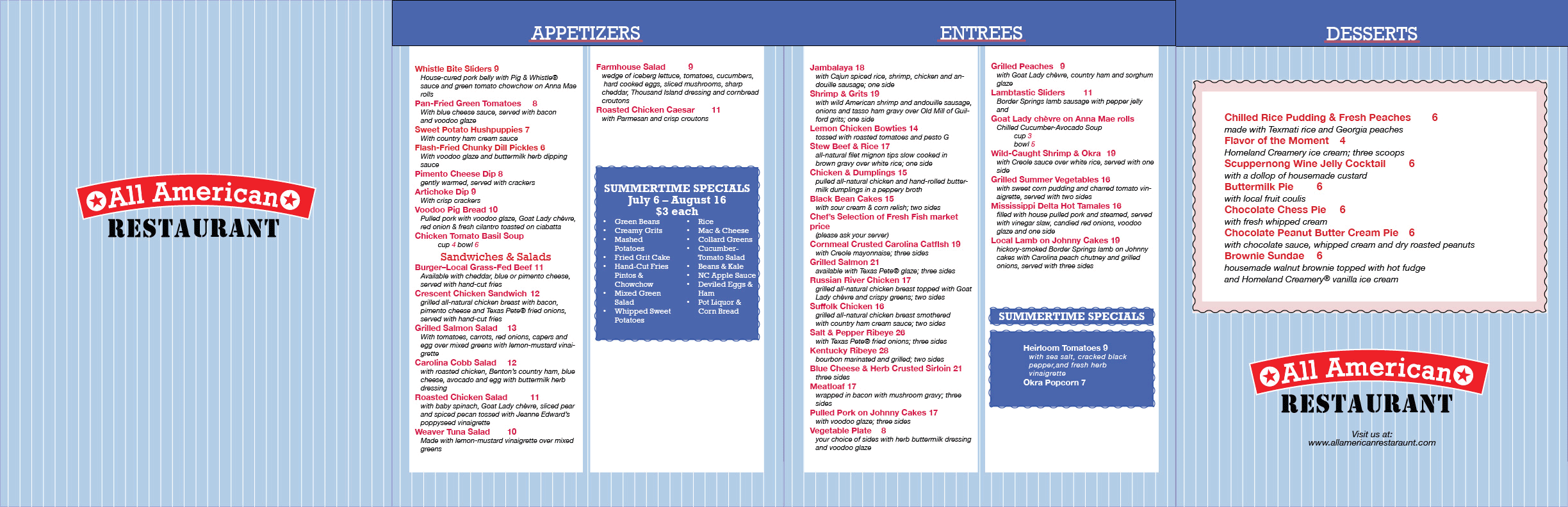 This is the menu for All American Restaurant. Created in Adobe InDesign.